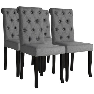 Dankzij de zachte stoffen bekleding en schuimvulling zijn de stoelen zeer comfortabel. De decoratieve knopen op de rugleuning voegen een mooi en klassiek detail toe aan het ontwerp.